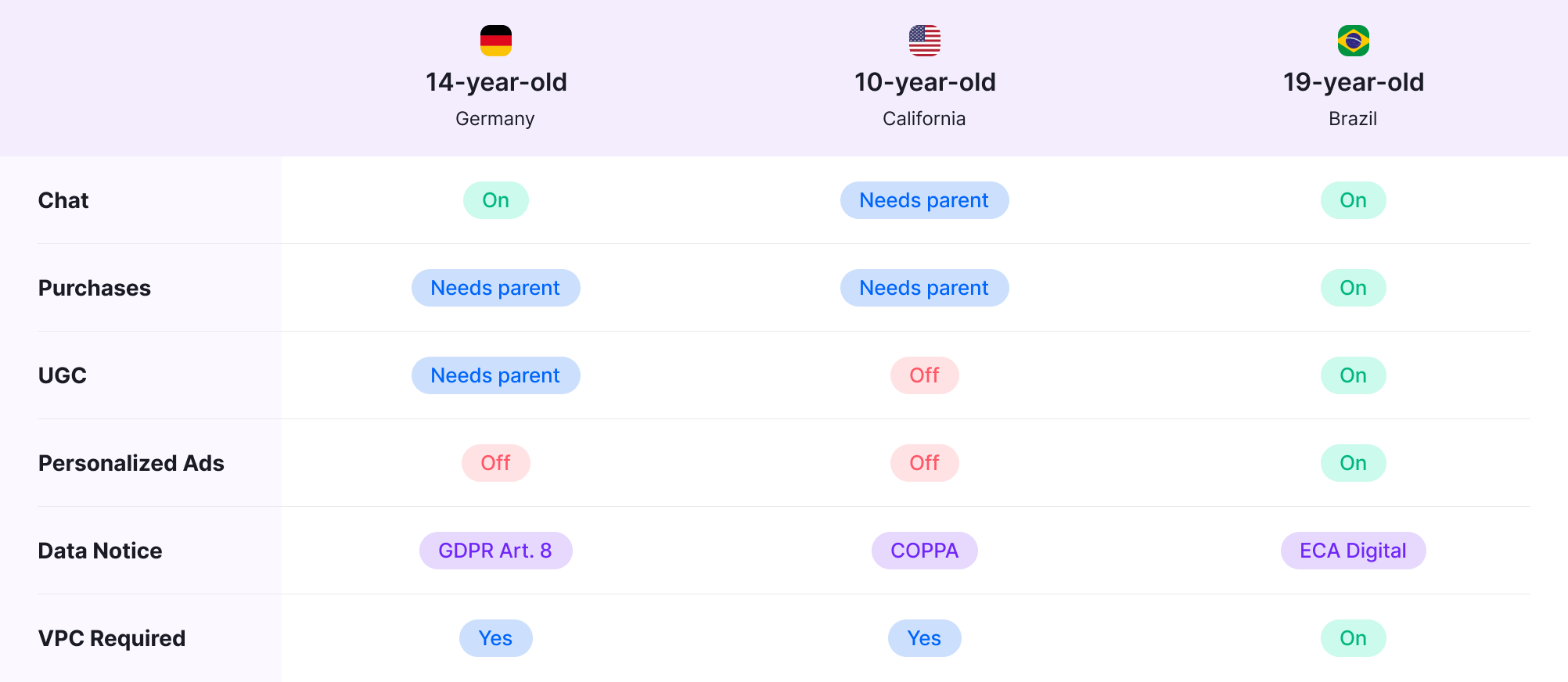 For every player session, CDK evaluates age, jurisdiction, and consent status to answer these questions in real time.